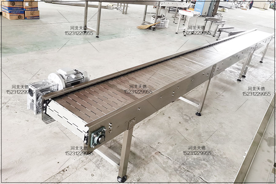 2、選用不同形式的平板鏈,可實(shí)現(xiàn)平面輸送、平面轉(zhuǎn)彎、提升下降爬坡等各種功能。