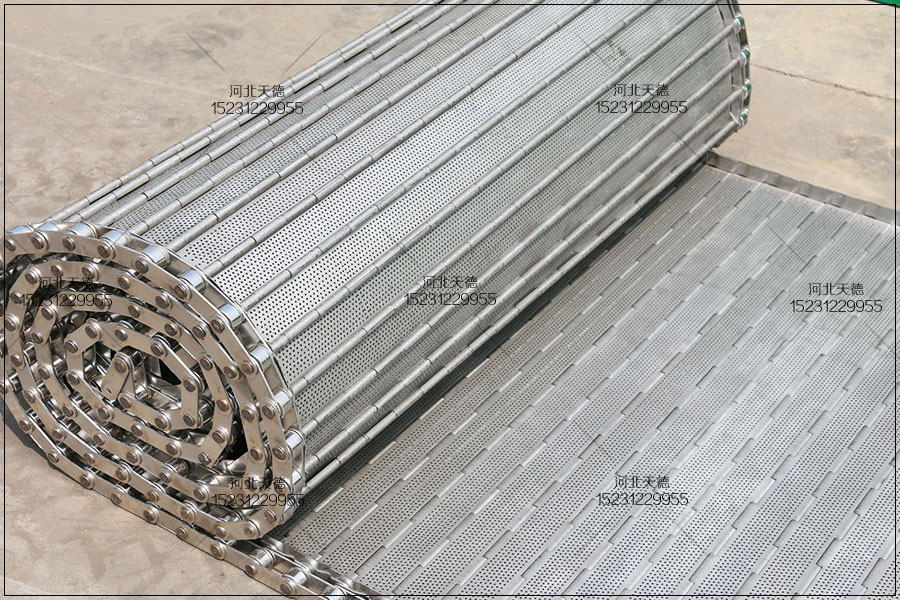 刮板提升食品鏈條傳動式金屬鏈板輸送帶的采用裝置,故障排除法分析是洋洋客戶都想打聽的,如不銹鋼鏈板輸送帶出新跑偏,調接全自動軸的張緊軸,應緩慢的調試,忌口快速調整,以致網帶邊緣刮損。如不銹鋼鏈板輸送帶出現共振情況,應反省輸送架與輸送隧道內托輥有無銹蝕拒轉景象,逐一進行調整鏈條傳動式不銹鋼鏈板如輩出跳鏈,運行出現不穩,主動軸兩者不 銹鋼鏈板是否一起,齒端是不是過度破壞。不銹鋼鏈板輸送帶承重高、耐磨損、抗高溫、抗腐蝕、使用壽命長。