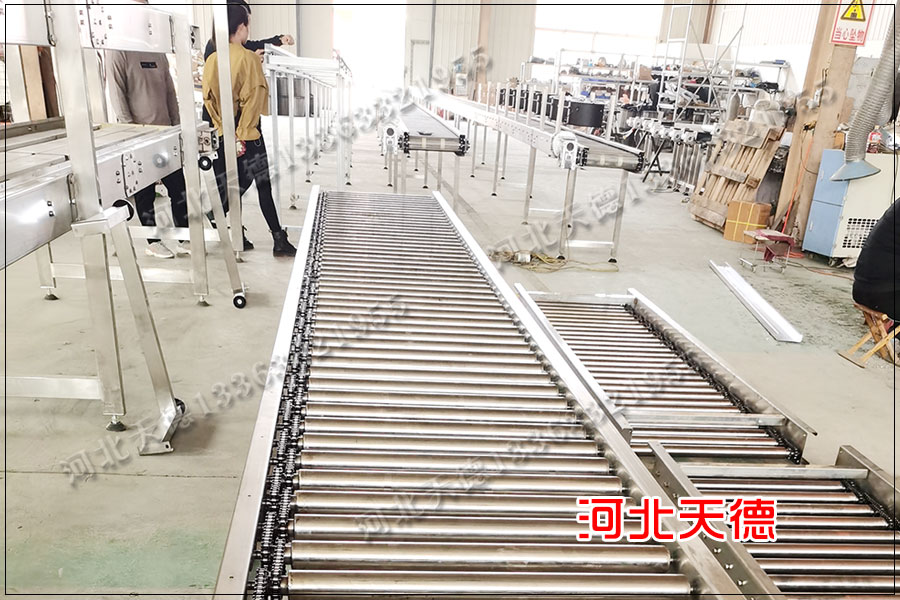 托盤輸送線滾筒輸送機的特點:物流滾筒輸送線之間易于聯接過濾,可用多條滾筒輸送線與其它輸送機組成雜亂的物流輸送體系,完結各方面的輸送需求。可選擇積放滾筒完結 物料的堆積運送。