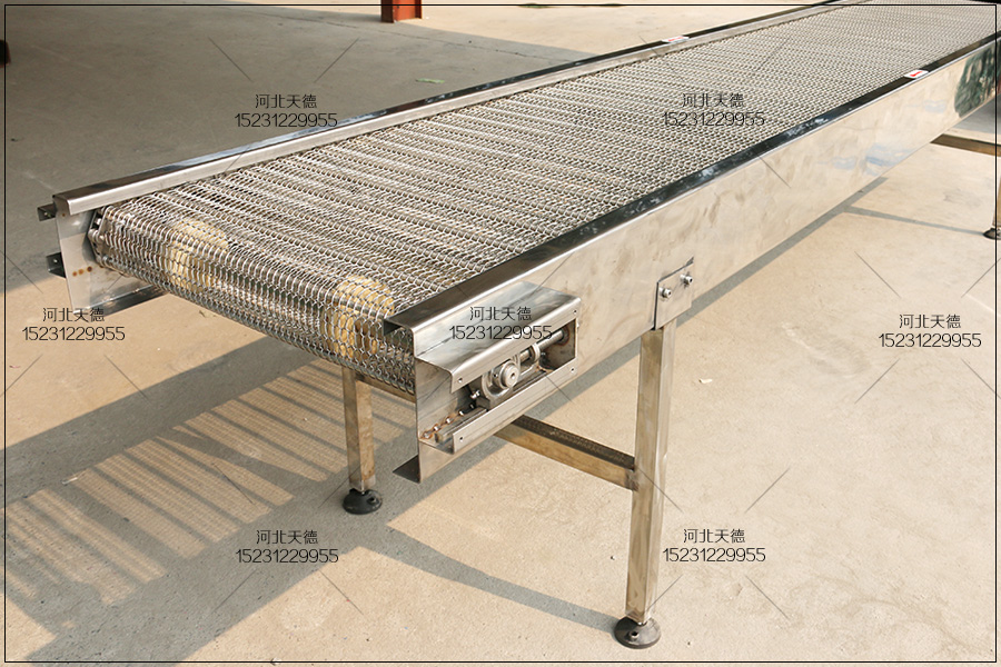 昨天下午江西石總來電咨詢網帶輸送機用來輸送橡皮擦,橡皮擦的大小在32*22*12毫米左右,在這之前采用的是皮帶輸送機,由于皮帶輸送機使用一段時間后會出現部分小問題,因此石總考慮換成不銹鋼網帶輸送機,要求不銹鋼網帶的孔不能太大了,而且速度可以自己調節,輸送機的高度也可以自己調節。下面是網帶輸送機的詳細規格: