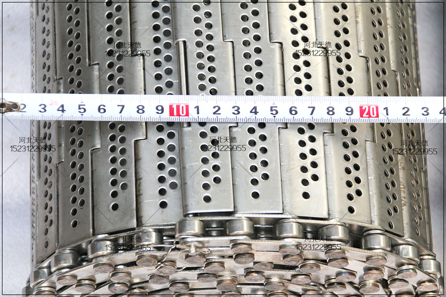 鏈板輸送帶是采用鏈條與板材加工成的,總寬度是70公分,長度是10米,食品輸送機(jī)的傳送距離是5米,板厚采用1.5毫米不銹鋼304材質(zhì)的板材加工的,鏈條節(jié)距為50.8毫米的,桿直徑選擇為10毫米的。