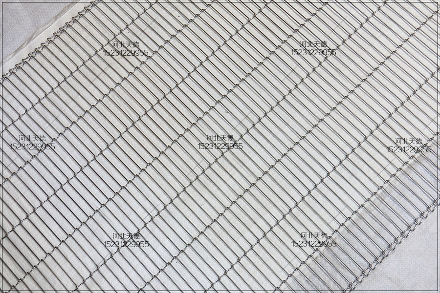 乙字輸送帶多用于食品的輸送,常見輸送巧克力、薄脆餅干、蛋糕加工線、油炸機設備、烘干設備等等,但是乙型輸送帶也可以用在裝飾行業中使用,可以用在室內的裝修,酒店裝飾,書店裝飾等等。下面天德介紹一款可以做金屬網帶使用也可以做裝飾網使用的乙字網。