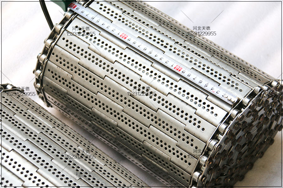 食品檸檬片烘干機耐高溫輸送帶鏈板,耐高溫防止生銹等,河北天德輸送公司加工制作高質量的檸檬片烘干機、型煤壓球機用鏈板輸送帶、鏈條式耐高溫輸送帶、各種規格型號都有,河北天德生產的輸送帶還有金屬片輸送帶、超薄輸送帶、翻邊輸送帶、翻板輸送帶、馬蹄式傳送帶等等以及金屬桿與鏈條組裝的支軸鏈,檸檬片烘干機鏈板輸送帶輸送KIAN平整硬度高、抗腐蝕抗拉強度大、打孔后透氣性能好、不變形耐用等多方面的功能。