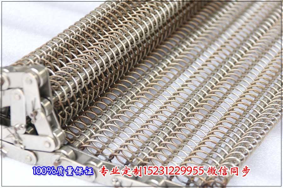 單旋金屬網帶:是用軋花穿條連接兩個不同方向的螺旋絲,小網孔大小為3-30毫米,金屬網帶的承載物品的能力通過定制不同不銹鋼絲的直徑粗細與支撐穿桿的直徑與桿間距來定制的,單旋金屬輸送網帶可適用于大多數行業輸送,使用材質可根據物料特性、使用環境選擇和空氣的情況來確定的。