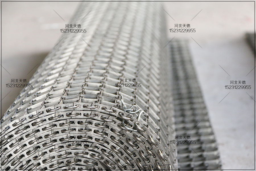 河北天德絲網制品有限公司生產銷售各種規格的網帶輸送機、輸送網帶、鏈板提升機、轉彎機、鏈板輸送帶以及耐高溫輸送帶。