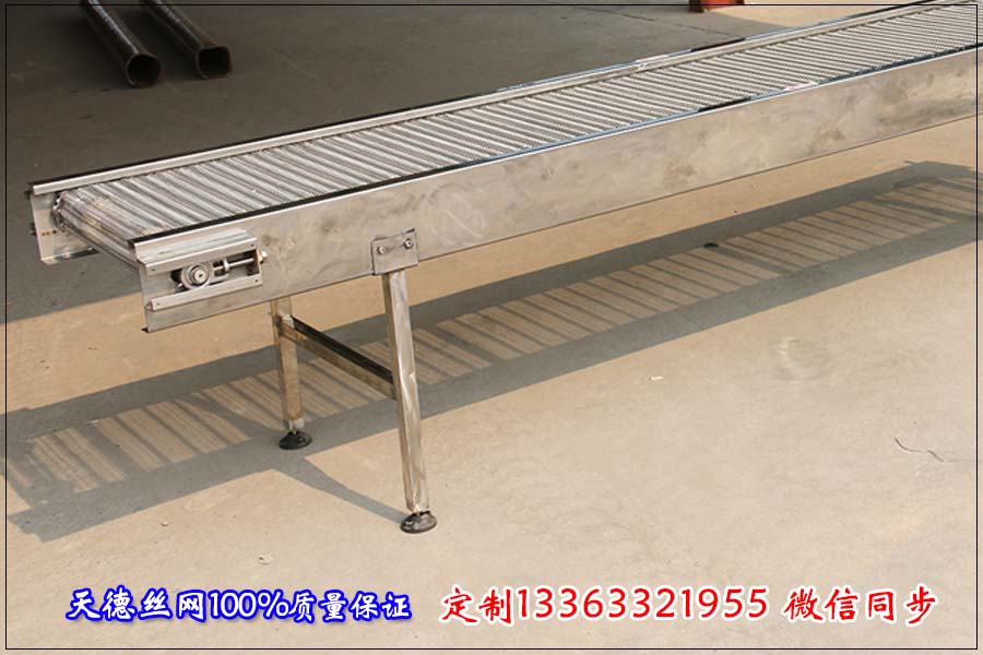 一臺實用的網帶輸送機它長度、寬度等參數都是有一定比例關系的一般來講網帶輸送機的寬度不能超過2米,長度不能超越30米。如果輸送物料體積大、密度大那就要在網帶下方加裝軌道支撐;如果輸送線比較長的話把網帶輸送機分節來制作而不能做成一條輸送線,因為網帶輸送機超過30米的話輸送網帶在牽引力下延伸率太大,造成輸送機脫軌或者跑偏。