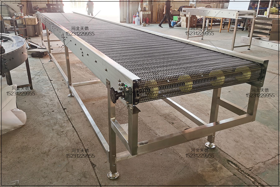 歡迎來電定制河北天德網帶式水果罐頭生產線不銹鋼鏈條輸送機:15231229955 網址:http://www.eslzc.com.cn//