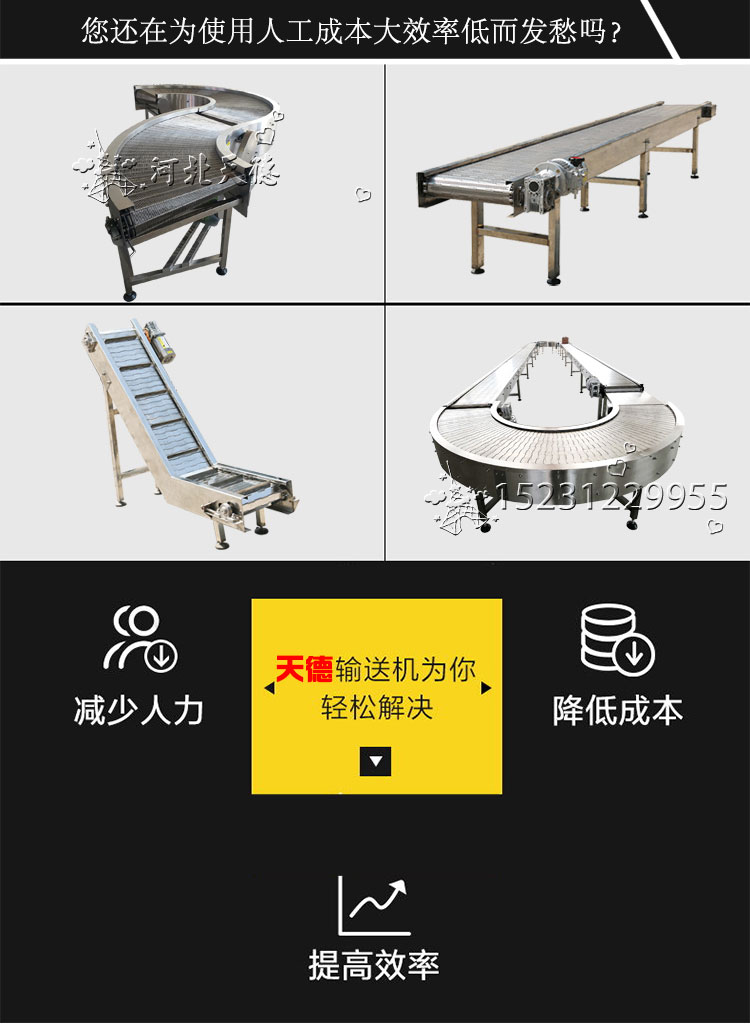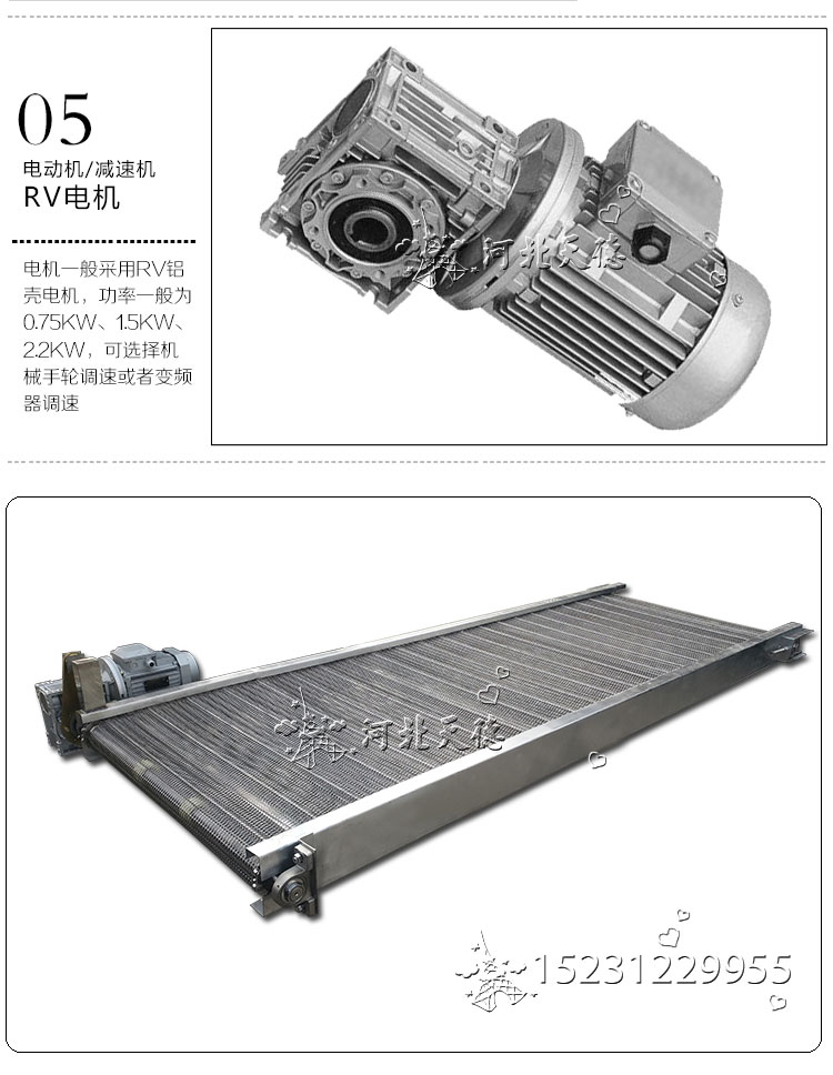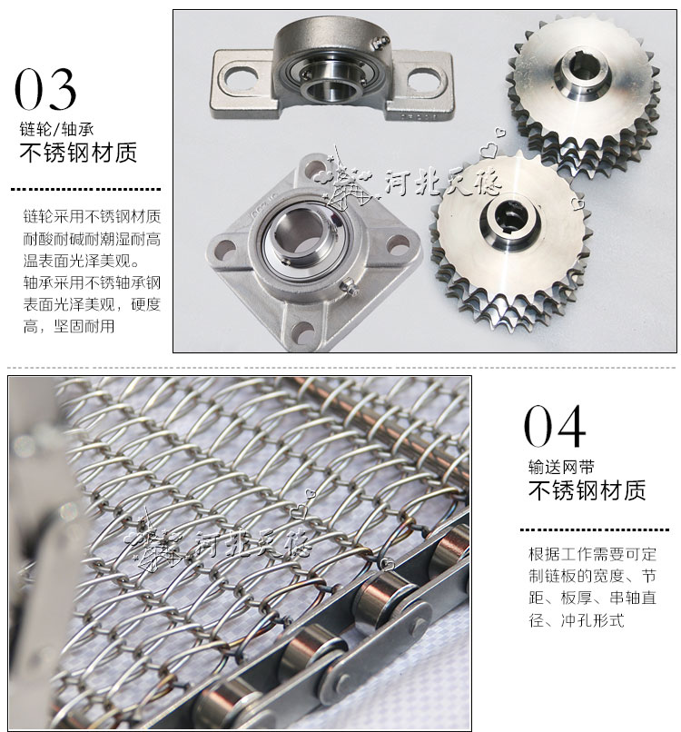 4.采用不同材質的網(wǎng)帶可以起到不同的輸送作用并且滿足不同環(huán)境的需要,能夠滿足環(huán)境溫度零下-30度至120攝氏度之間的輸送要求。