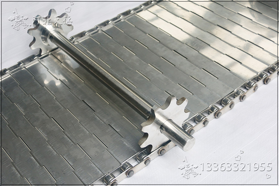 不銹鋼鏈板的造型跟家里的門和門框鏈接的合頁相似所以有人叫他合頁鏈板,使用支軸將合葉和鏈條串在一起。兩端的鏈條可以使用開口銷或者墊圈來固定,使用開口銷方便拆卸,維護方便。